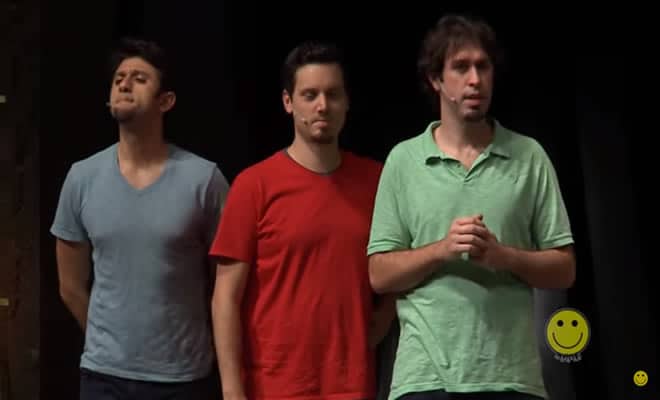 Temas (profissões propostas pela plateia): “Fotógrafo”, “Veterinário” e “Coveiro”.
