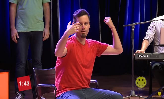 Regra: Os jogadores devem realizar uma cena dentro do tempo estipulado, utilizando todos os itens sugeridos pela plateia.