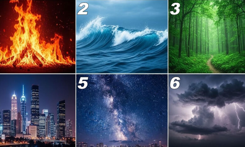 Escolha sua imagem e conte: está vivendo em chamas, ondas, raízes, concreto, sonhos ou trovões?