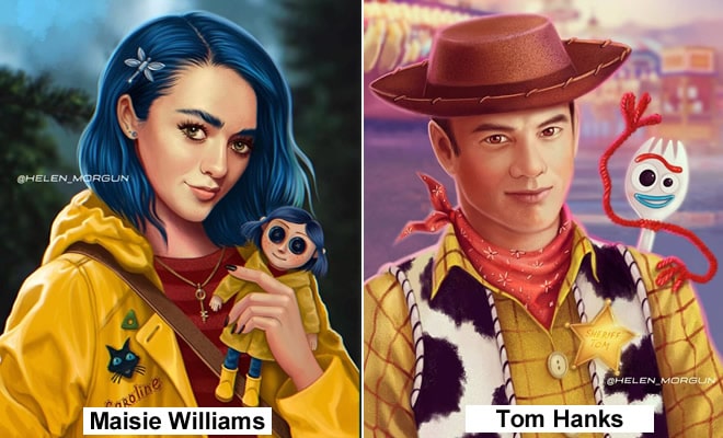 A ilustradora Elena Morgun cria arte incrível e caprichosa de celebridades. Ela os desenha como personagens que eles deveriam interpretar ou eles representaram. Seus personagens favoritos para transformar as celebridades são ninguém menos que os personagens da Disney.
