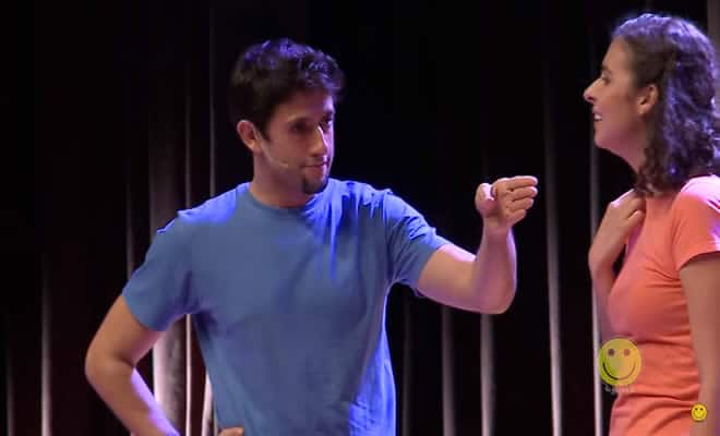 Regra: Contando com duas campainhas diferentes, os atores devem apresentar uma cena entrando ou saindo da cena de acordo com a campainha tocada.