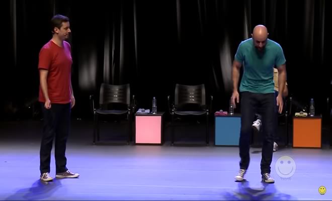 Regra: Os jogadores irão começar uma cena, e quando o mestre de cerimônias mandar, deverão avançar ou recuar a cena, representando todas as falas e movimentos como nas teclas de avançar e recuar do controle remoto.